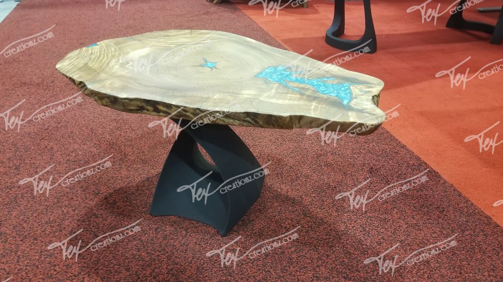 Curly Camphor cookie name the "Falcon" with aqua epoxy with black metal base.