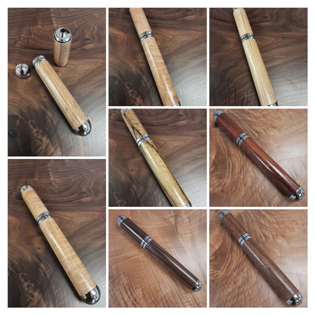 Hand turned by Master Craftsman, my dad, JohnTeixeira, 52 gauge cigar tubes with built in hole punch, in case you forgot your cutter. Awesome feature to have. Built with brass inlays and o ring to keep your cigar just right before enjoying it. They are made out of instrument grade exotic woods. They are 50.00 with free shipping in the US. Will ship international with additional shipping fees. Cont